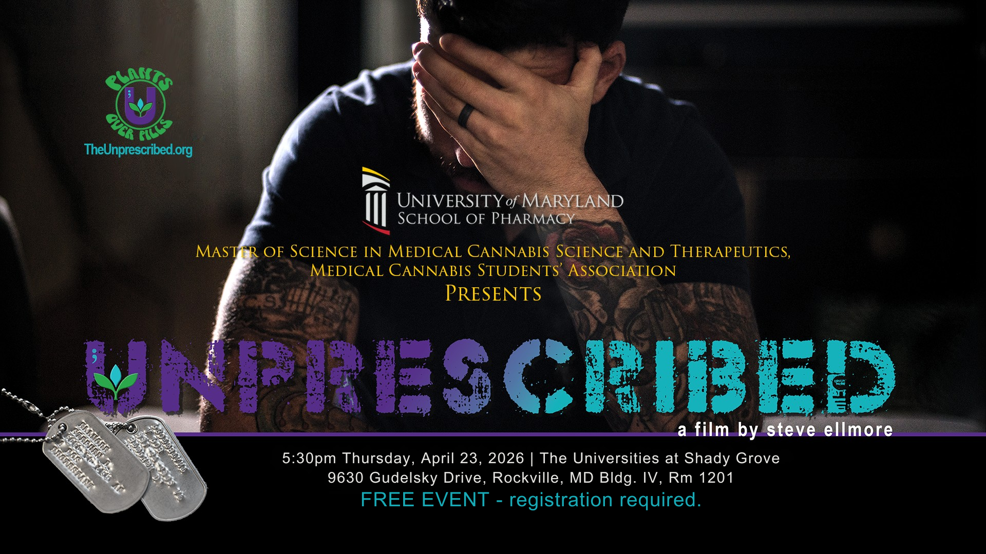 About the Event: The University of Maryland School of Pharmacy’s (UMSOP) Medical Cannabis Student Association is excited to host a screening of the documentary Unprescribed.